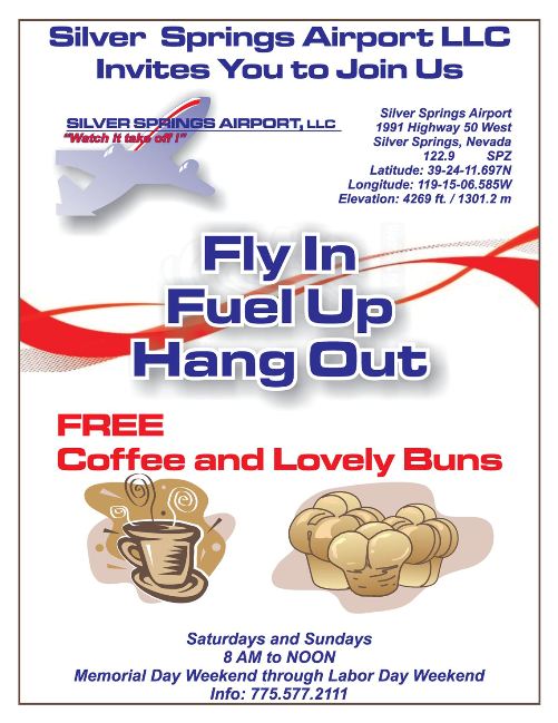Silver Springs Airport LLC is pleased and proud to announce the completion of our new FUEL FACILITY. Join us for the Dedication Celebration on Wednesday, April 28, 2010 from 10 AM to 2 PM. Color Guard and Flag Raising Ceremony by W. NV Veterans Assn. Dedication by Governor Jim Gibbons. Lunch and refreshments by ROP. More details will be available on this site soon. Please RSVP to Kay Bennett at kay@silverspringsairport.com or 775.577.2111 so we can plan a great event for everyone.